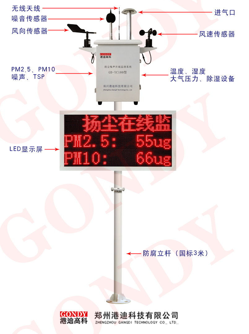 5、LED屏顯示,揚塵監測設備都有LED屏,用來顯示各項監測參數的數值;