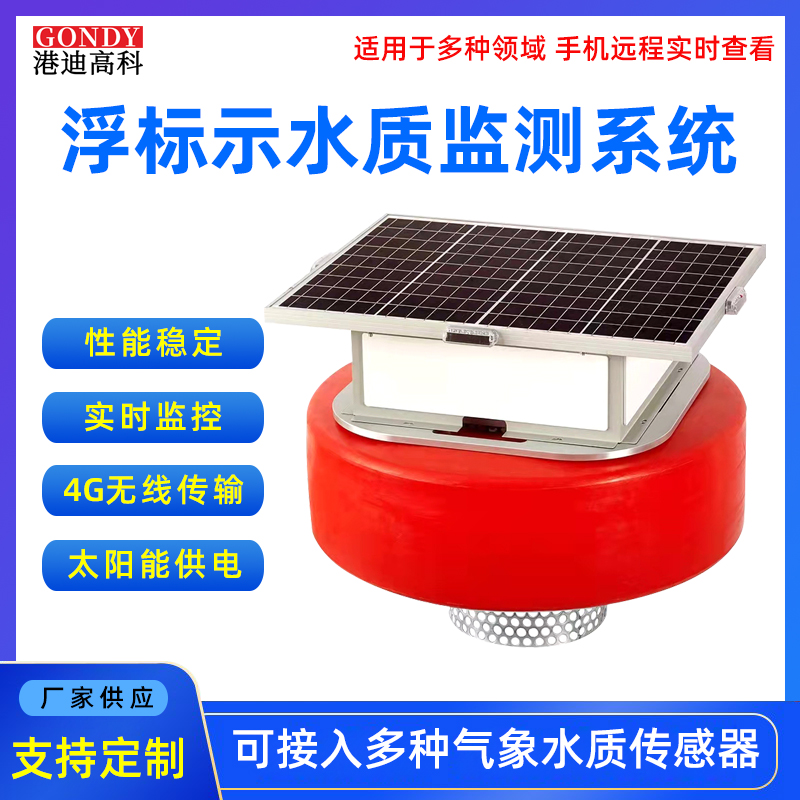浮漂式水質監測儀,由浮標體及錨系、監測儀器(攝像頭、溫度、溶解氧、濁度、電導率、PH、氨氮、UV COD、葉綠素等)、數據采集傳輸模塊、無線傳輸模塊、供電單元、報警、GPS、遠程監測平臺組成,無需鋪設電纜,可迅速方便地投放在需要監控的地方進行無線監控。